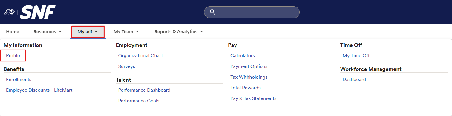 1. Within ADP, go to Myself in the navigation menu and select Profile.